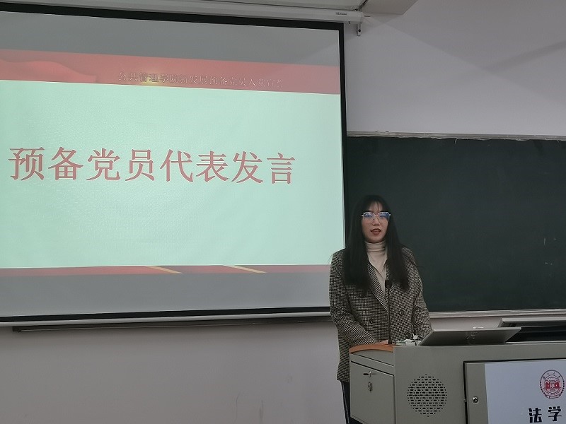宣誓仪式在雄壮的国歌声中拉开序幕。首先进行的是付蓉芬书记宣读新发展预备党员名单,依据党员发展相关规定,经民主决议、院党委研究,决定接收胡赛全、王雪楠等19名同志为中共预备党员。付蓉芬书记勉励新发展预备党员们在今后的学习生活和实践中要牢记对党许下的誓言,坚持理想,不忘初心,时刻警醒自我,奉献社会。
