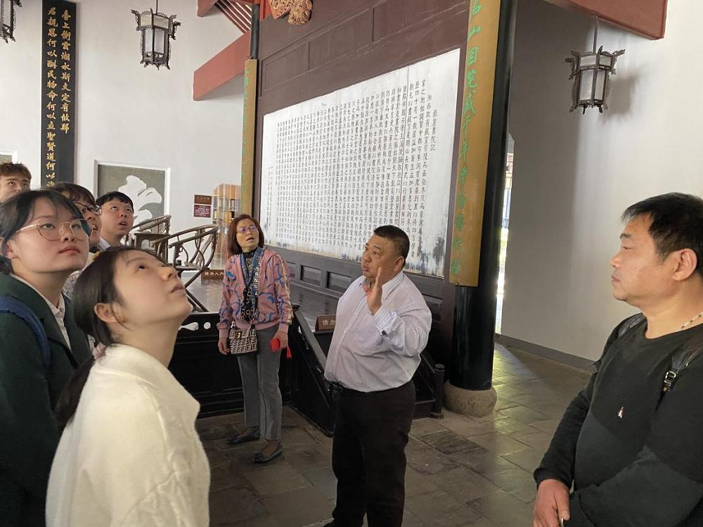 在“实事求是”的匾额下,汪建武老师带领大家回顾了毛主席两次寓居岳麓书院并丰富和发展了实事求是思想的内涵,使之成为毛泽东思想精髓的故事,告诫各位同学要深刻领会习近平总书记关于实事求是思想路线策源地和传承地、实践地的重要论述和深刻意义,认识到岳麓书院在新时代的历史定位和重要的战略地位。