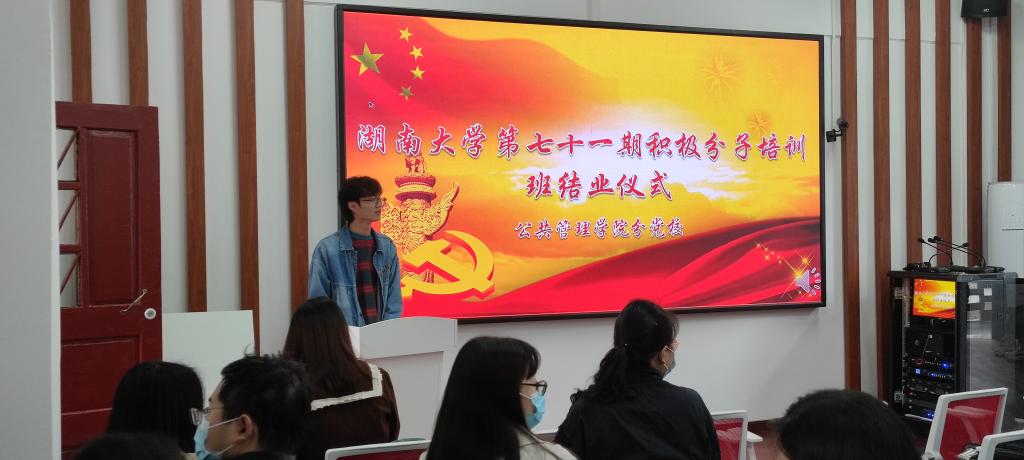 仪式在雄壮激昂的国歌声中正式开始。会上,付蓉芬书记对学院顺利结业的积极分子表示祝贺,并指出在中国共产党成立100周年之际,参加党课培训,加强党史学习,意义重大。只有了解党所走过的奋斗历程,准确把握党的历史发展,才能更加深刻认识初心使命,更加坚定理想信念,每一位积极分子都应深入学习党的各项政治理论,学习习近平总书记系列重要讲话,努力学好专业知识,将来报效祖国、报效社会。