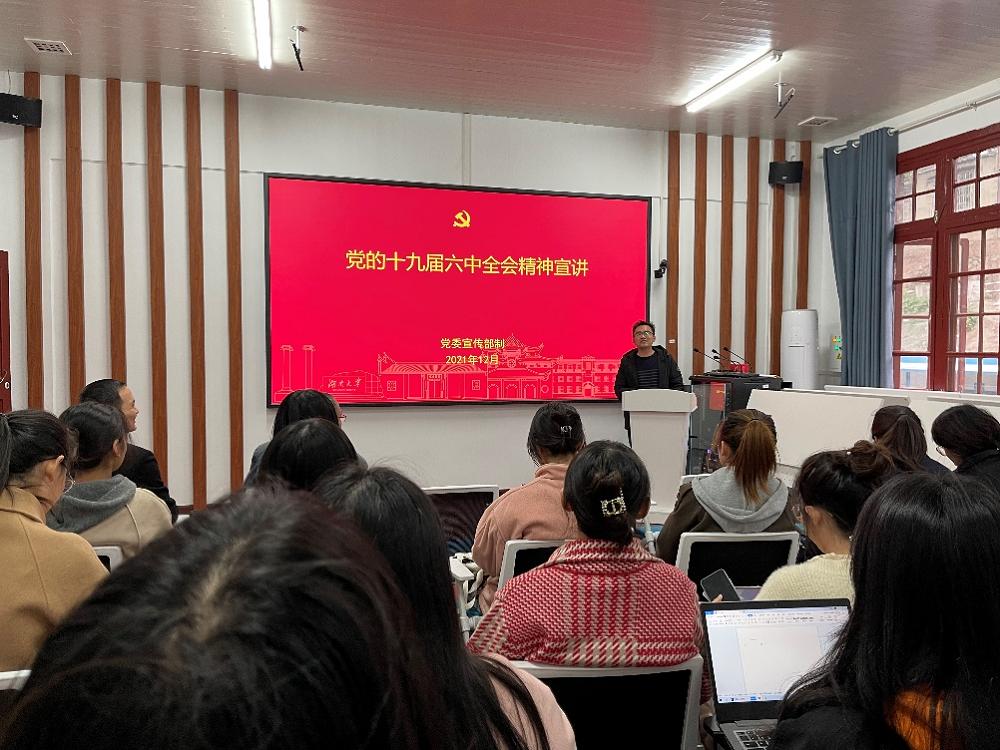 2021年12月8日,行政管理研究党支部支部书记赵岩在bevictor伟德官网221进行了党的十九届六中全会精神宣讲,宣讲对象包括行政管理研究党支部支部成员,还有2018级、2019级部分行政管理本科生,共计30余人。宣讲会上,赵岩同志从深刻认识总结党的百年奋斗重大成就和历史经验的重大意,深刻认识党的百年奋斗的初心使命和重大成就,中国特色社会主义新时代的历史性成就和历史性变革,深刻认识党的百年奋斗的历史意义和历史经验,深刻认识以史为鉴、开创未来的重要要求,从党的百年奋斗历程中汲取智慧和力量等6个方面对十九届六中全会精神进行了宣讲,并在现场与宣讲对象进行了现场互动。