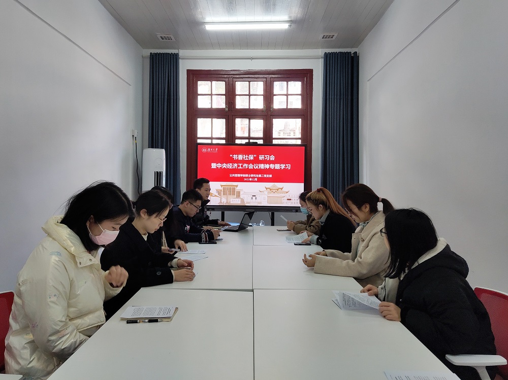 12月20日下午,bevictor伟德官网硕士研究生第二党支部于院楼220室开展“书香社保”研习会,学习中央经济工作会议精神暨集体过政治生日活动,支部书记肖苏华主持会议,支部全体党员参加。