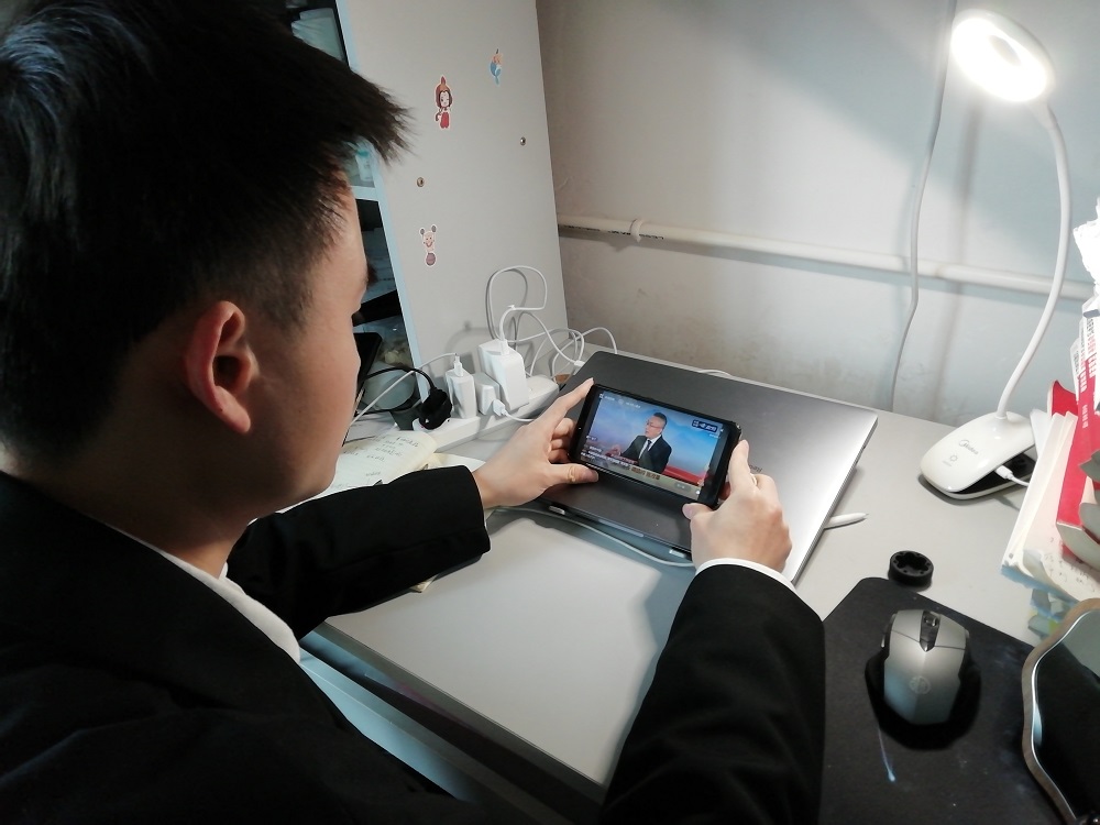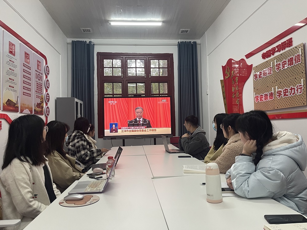 bevictor伟德官网第一时间组织部分研究生于学院党员活动室集中观看全国“两会”开幕直播盛况,认真学习全国“两会”精神。其他研究生则通过电脑、手机等方式观看直播。