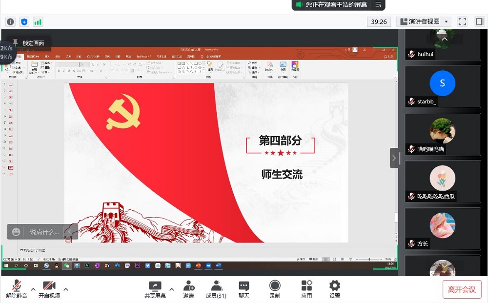 会议最后,王浩同志呼吁作为一名党员,我们更应该承担起力所能及的责任,为抗疫奉献自己的力量。相信在全体师生的一致努力下,没有疫情的春天必将如约而至。