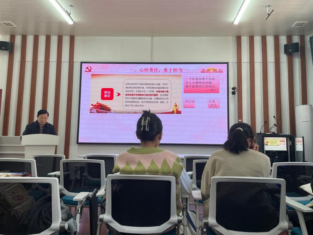 首先,胡建国老师引用习总书记关于理想信念的重要讲话,强调作为一名合格的共产党员,要心怀责任,敢于担当,不忘初心,坚定理想信念。随后,老师从三个方面讲述了中国共产党的指导思想。