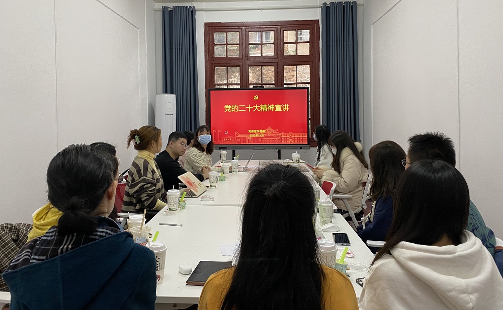 随后,罗欢带领支部同志专题学习党的二十大报告内容,深刻领悟报告的丰富内涵和精神实质。罗欢强调,做一名合格党员,要深入学习党的二十大精神的重大意义、全面理解党的二十大精神的核心内容,恪守初心使命,不断提高政治站位,结合专业学习与自身实际,制定奋斗目标。
