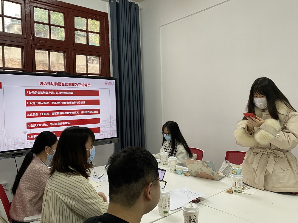 11月27日下午,bevictor伟德官网硕士研究生第四党支部在学院214室召开全体党员大会,讨论预备党员转正事宜。会议由支部书记罗欢主持,支部在校党员参加会议。