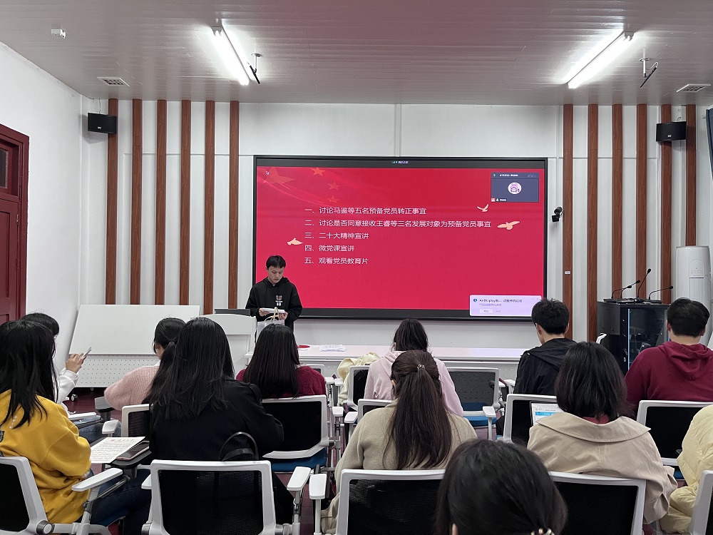 11月27日下午,我院硕士研究生第一党支部在院楼221举行党员大会。大会由党支部书记曹丽康主持,在校学生党员参加。