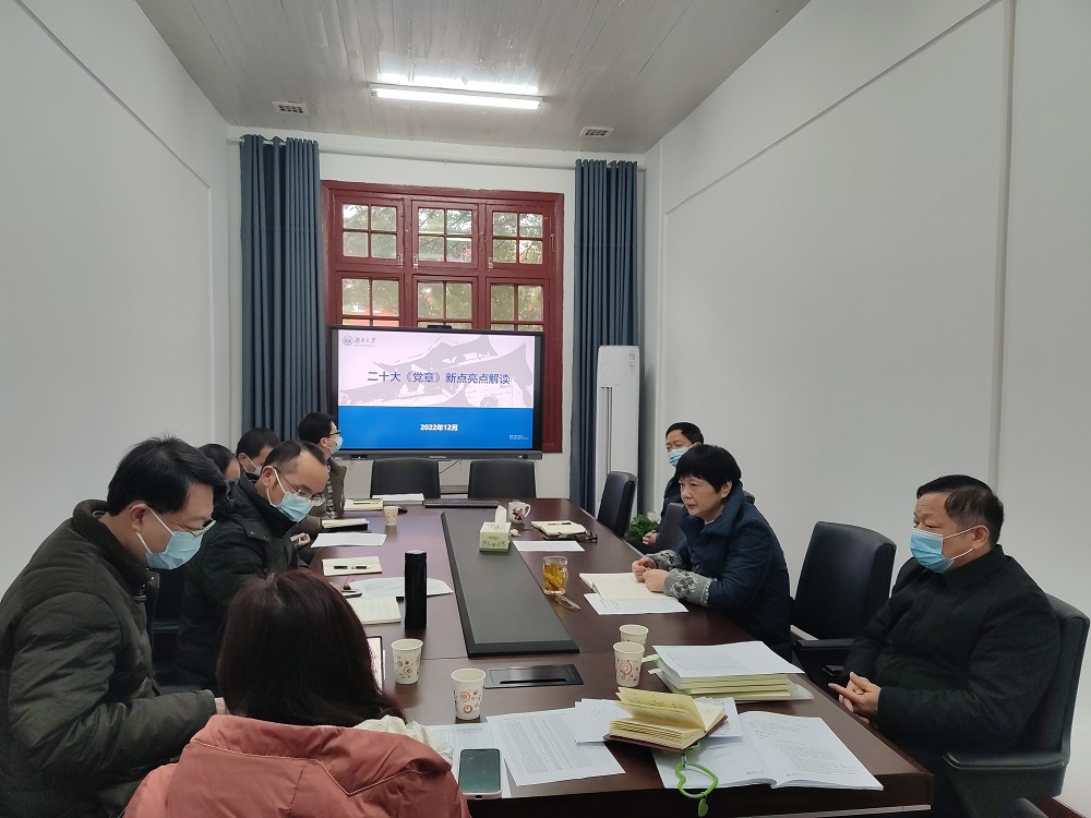 12月7日下午,bevictor伟德官网党委中心组开展本学期第11次理论学习。院党委书记付蓉芬主持学习,院党委副书记、纪委书记杜倩博领学党的二十大修改通过的新《党章》,院长李连友及学院中心组全体成员参加学习。