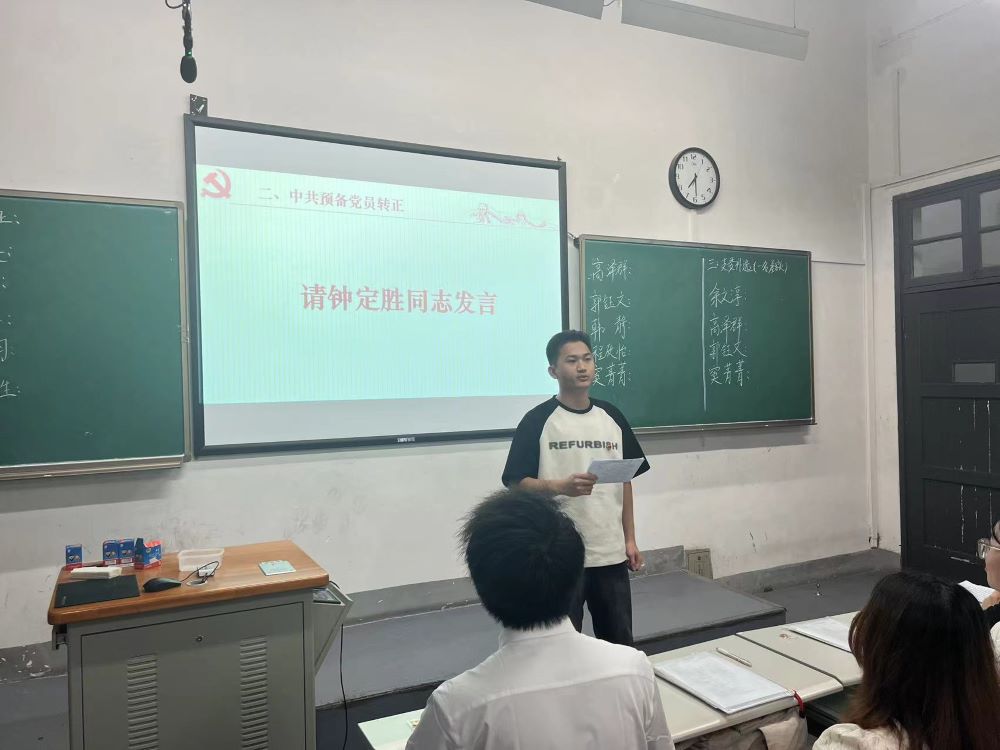 5月23日,我院本科生第一党支部于东楼102室召开党员大会讨论表决2024年5月23日批次中共预备党员按期转正事宜。本科生第一党支部书记赵新宇主持会议,支部全体成员参加会议。本次会议主要讨论表决预备党员转正申请。