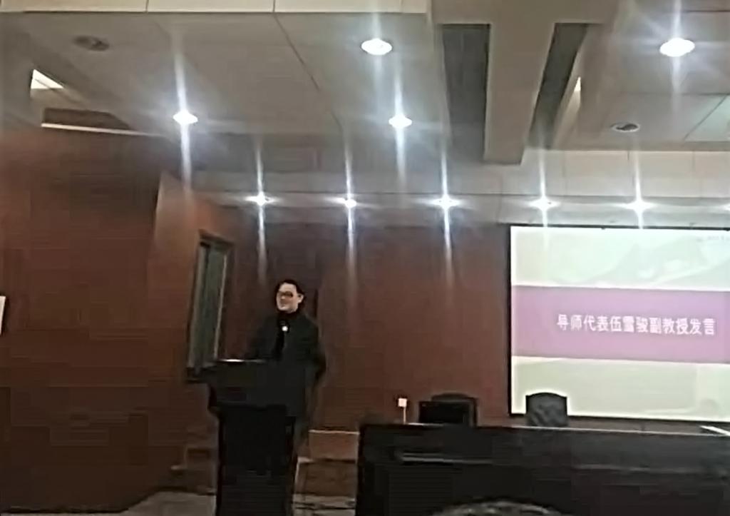 最后,副教授伍雪骏老师发表讲话。伍老师演讲文采斐然,引经据典,讲述了实行本科生导师制的原因与意义。伍老师指出,公共管理是一个包罗万象的学科,适用性强、适用面广,与当代国家和社会治理息息相关。同时,伍老师认为,我院导师团队人才济济、各有专长,同学们可以借助学院提供的平台,根据自己的爱好,自由地选择感兴趣的研究方向并得到导师的指点。此外,伍老师鼓励同学们多与导师交流,跟随导师学习做人、做事的方法,从而使自己在四年的大学时光里获得较大提升和进步,不负青春与汗水。