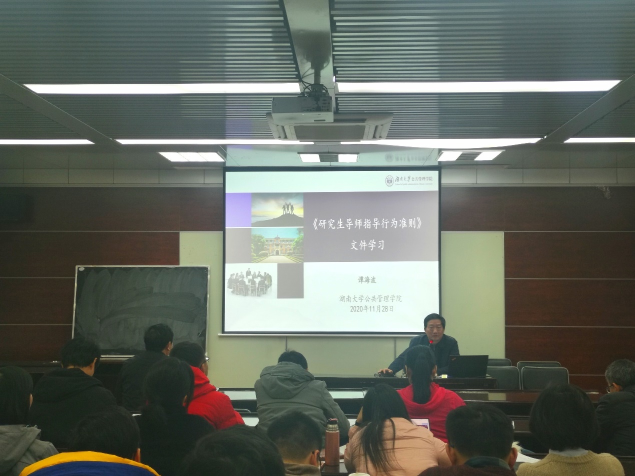 学院院长李连友带领大家认真学习了《研究生导师指导行为准则》的八项内容,并结合学院实际情况对每一项内容进行了解读,重点学习了“不得”触犯的底线。他要求全体导师认真学习行为准则,正确履行指导职责,做到立德修身、严谨治学、潜心育人。他强调学院正处在快速发展的关键时期,高素质高水平导师队伍是学院高质量研究生教育的重要保障,全体导师务必坚持正确的思想引领,严格遵守学术规范,把关学位论文质量,构建和谐师生关系。