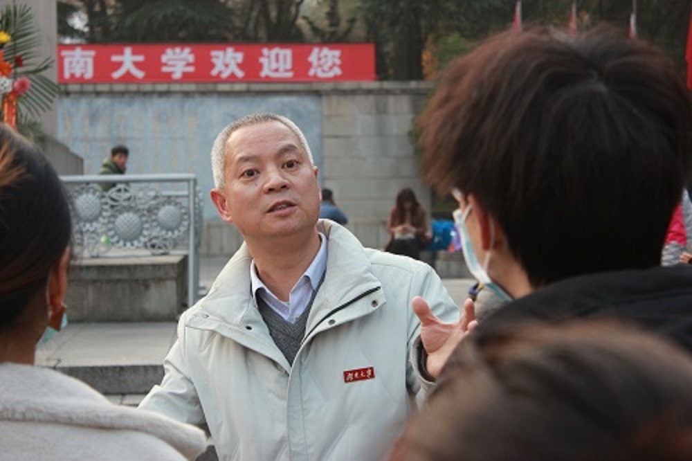 龙兵教授带领大家从科学馆讲起,探寻bv伟德官方网站历史古建筑背后所蕴含着沉重的历史积淀和博大精深的民族文化。民国二十六年由蔡泽奉教授设计的科学馆(现校办公楼)作为bv伟德官方网站的近现代保护建筑之一,是中国战区中国陆军第四方面军长衡地区受降仪式的遗址,这里青筒瓦坡的屋顶和红砖墙壁见证了中华民族的兴衰荣辱,也见证了中华民族“雪百年耻辱,复万里河山”的历史时刻。龙兵教授带领大家回顾了bv伟德官方网站在抗日战争时期的光荣历史,从bv伟德官方网站成立,到省立改归国立,再到日军侵略、西迁辰溪、光复故地,bv伟德官方网站不屈的文脉与精神赓续了民族文明命脉,为抗战救亡培养了人才,树起一座民族精神的丰碑。
