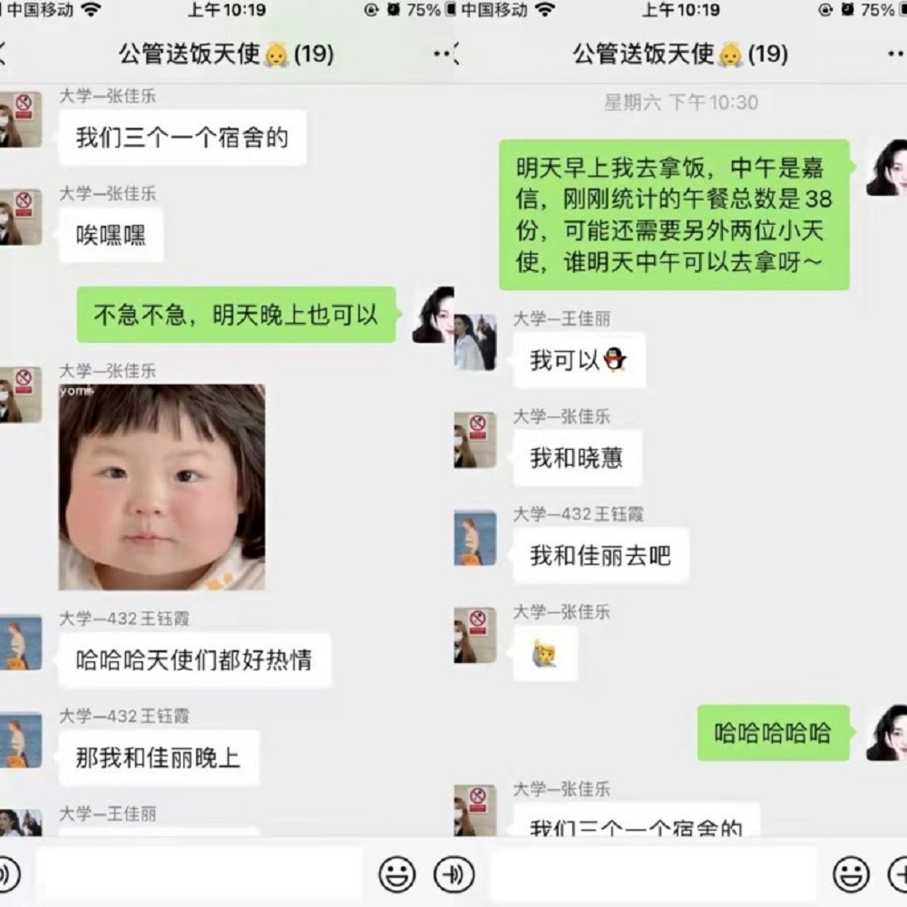 事迹5:bevictor伟德官网2020级硕士研究生史钰宏同学,志愿负责所在楼层红黄码寝室,三餐带饭工作。