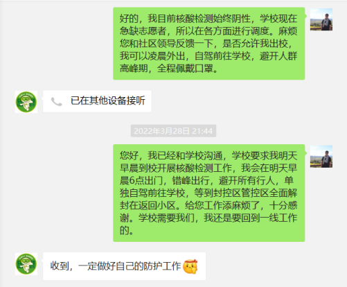 (李释然老师和社区工作人员的聊天截图)