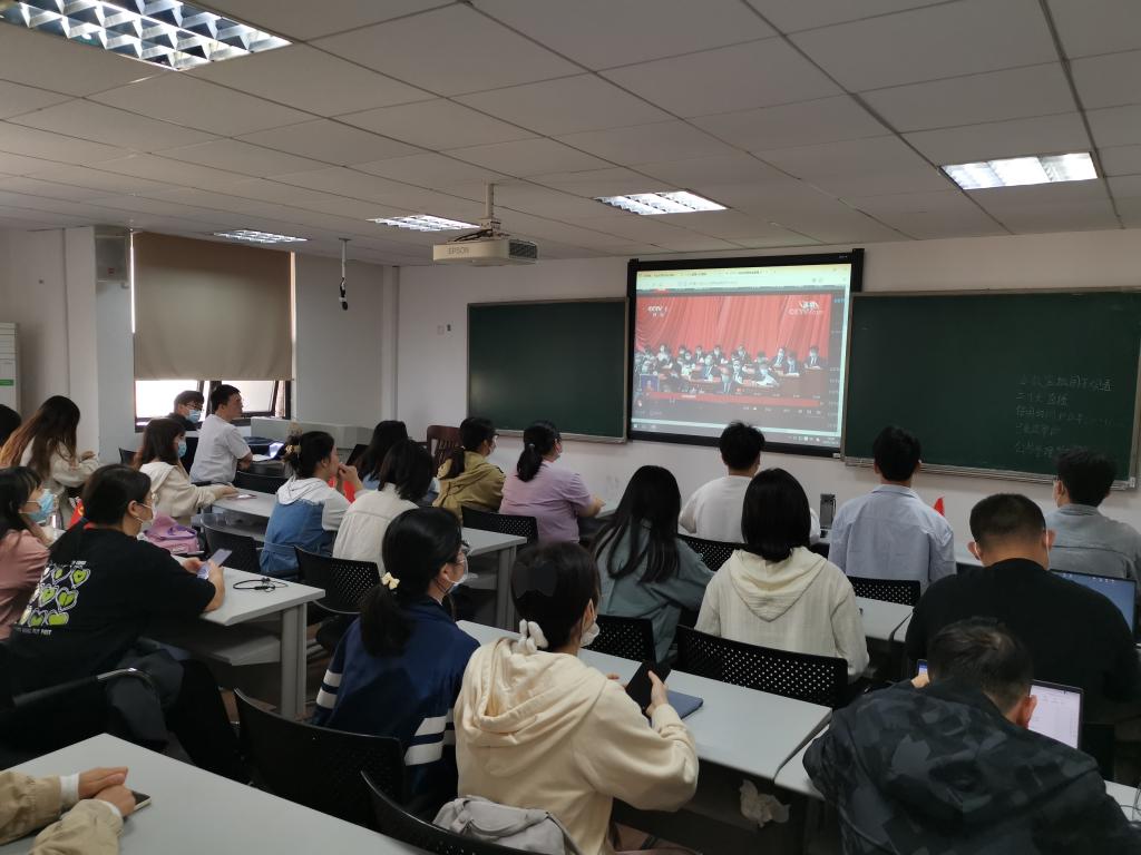 2022年10月16日上午10时,中国共产党第二十次全国代表大会隆重开幕。bevictor伟德官网党委书记付蓉芬、院长李连友、党委副书记、纪委书记杜倩博、研究生辅导员杨锦滔与本科生实习辅导员胡春晖分别在院楼221教室、综合楼108、507、509教室等各会场,同学院师生集中收看开幕会盛况,认真聆听习近平总书记所作的报告。其他院领导和师生以各种不同形式收看收听。