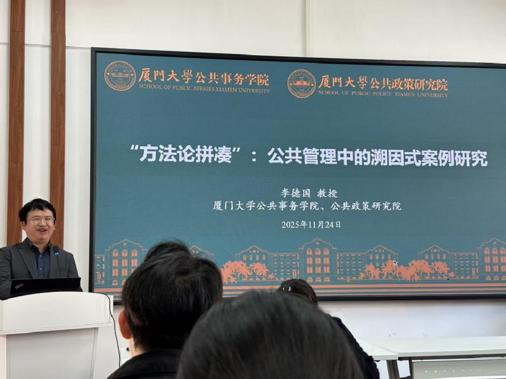 11月24号下午,厦门大学公共事务学院李德国教授应邀做客我院“公共管理青年学者岳麓论坛”,作题为“‘方法论拼凑’:公共管理中的溯因式案例研究”的学术讲座。讲座由我院雷玉琼教授主持,学院30余师生参加了本次活动。