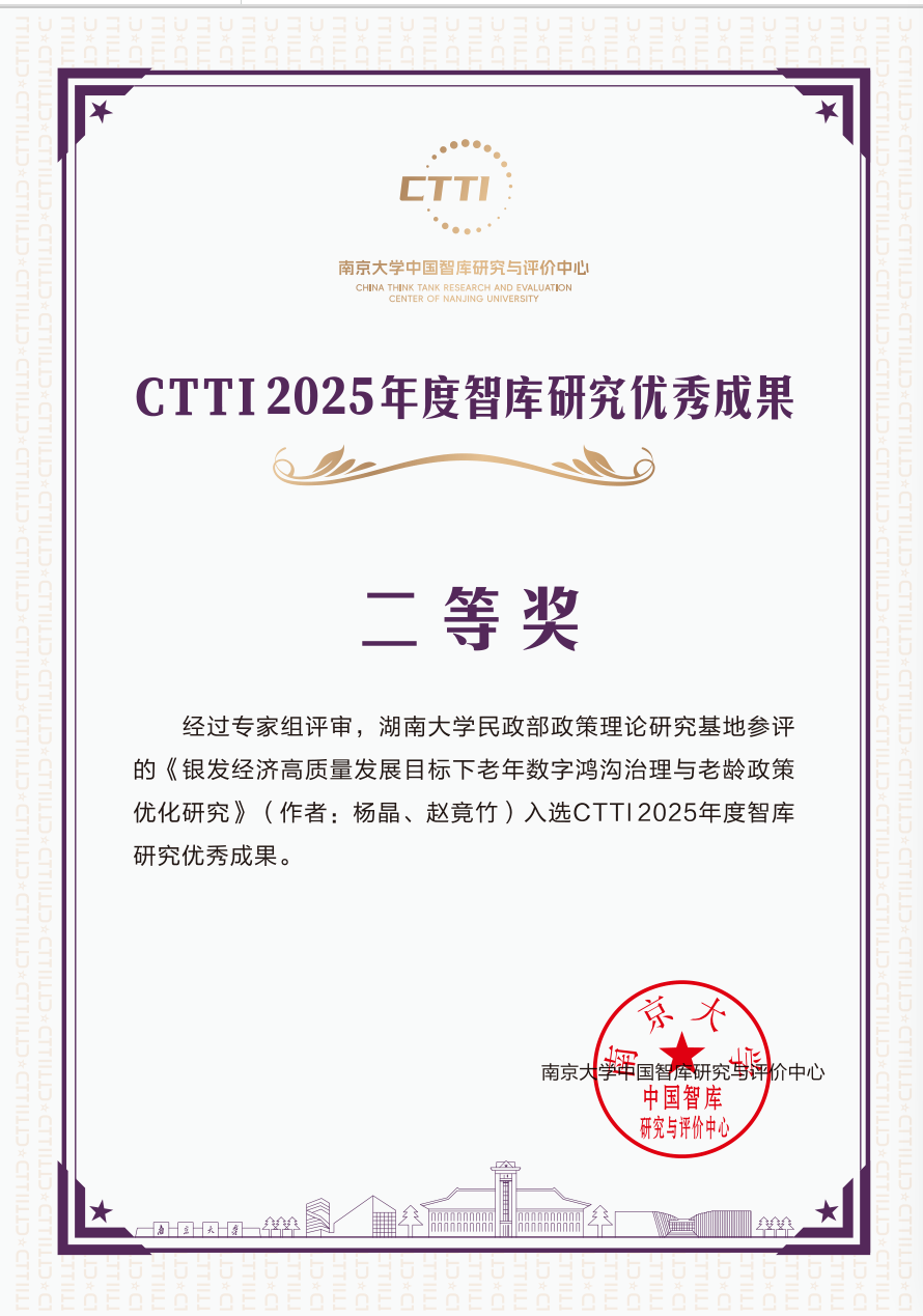 “bv伟德官方网站民政部政策理论研究基地”提交的二项成果,获评“CTTI2025年度智库研究优秀成果”二等奖。