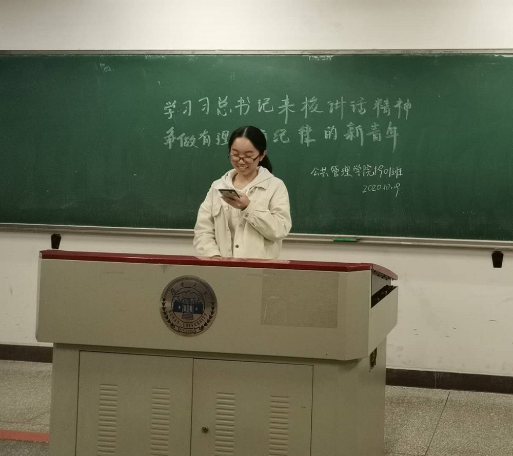 洪潇玲同学说,我们身为新时代青年,应该具备责任感和担当意识。此次全国疫情就是对全国人民纪律性和责任感的一次大考,正是因为此次疫情中全国人民团结一致,遵守国家抗疫的相关规定和要求,疫情才能在短期内得到控制,同学们才能这么快结束线上学习重新回归校园。因此,我们更应该以身作则,有更高的纪律性。青年人是国家和民族的希望,祖国的未来在我们身上。我们只有成为有理想有道德有文化有纪律的新青年,才能不负青春、不负韶华、不负时代。