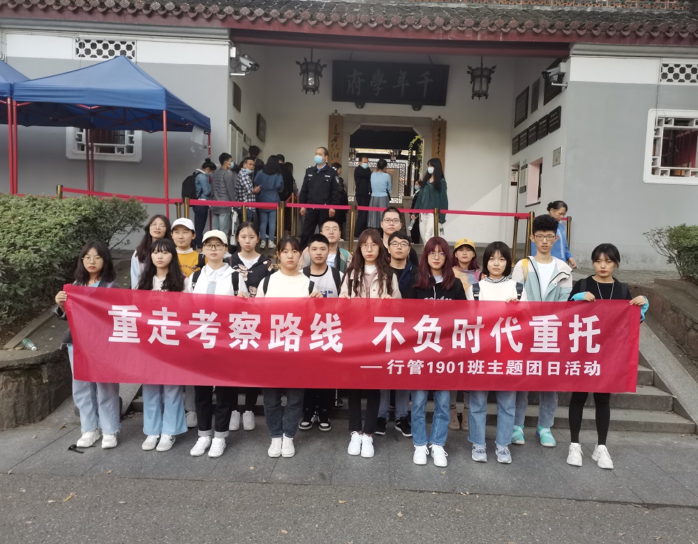为了深入学习贯彻习近平总书记在bv伟德官方网站考察调研时的重要讲话精神,10月22日,2019级行管一班团支部在岳麓书院开展“重走考察路线,不负时代重托”主题团日活动,支部全体成员参加此次活动。