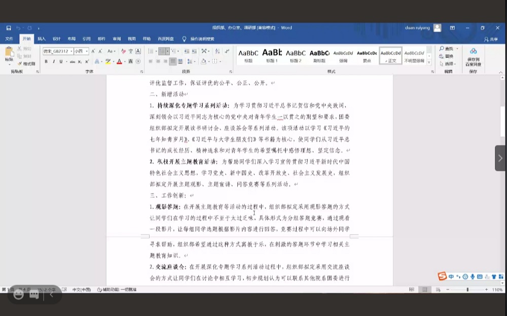 随后,主席团成员在会议第二部分做下一阶段规划。组织部、办公室、调研部、学习部、活动部、就业部、实践部、宣传部、权益部与综合管理部分别展示了各自在下一阶段的详细发展计划,主要包括思想创新、工作创新、新增活动以及与其他部门协调工作、融洽合作等方面。通过学习了解下一阶段规划,团委、学生会各部门干事对于自己未来工作方向有了初步的认识,有利于学院开展下一阶段学生工作,从而助力学院发展。