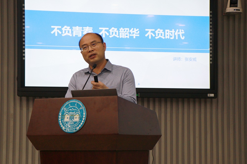 大会进行到第二部分,考德上教育名师张安威从自身从事公务员考试及相关培训10余年的经验出发,为同学们进行了公考前沿知识解析。张安威老师由十九大相关论断引入公考,接着介绍了公考的编制类职位与各种大型考试。在笔试应对中,张老师对于“行政职业能力测验”和“申论”两个科目,按照“行测”必刷题、“申论”答题技巧,分别讲述了应对经验和技巧,让在场的同学受益良多。同学们通过张安威老师的信息分享,对考公的方向、备考的策略和考公的取舍等方面有了更为清晰的思路。