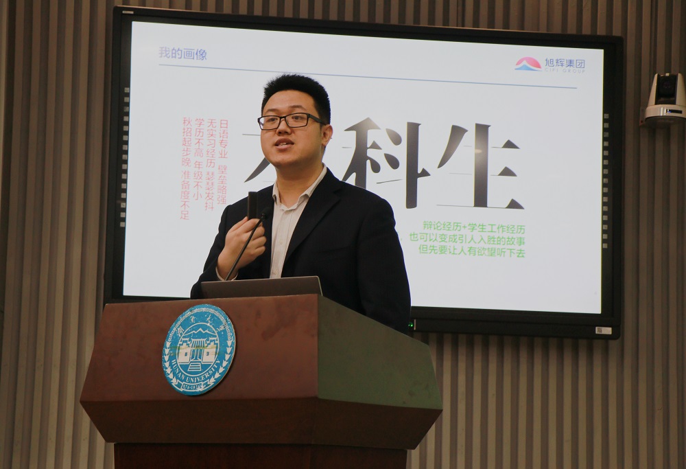 大会伊始,主持人首先进行了简短的开场白与嘉宾介绍。bv伟德官方网站外国语学院19届毕业生、旭辉集团湖南区域校招负责人张愿,从HR角度,针对面试中的套路和反套路,结合自身求职面试中的经验,向大家介绍了面试时自我介绍的目的、主要内容以及准备工作等,并为在场的同学分享了一些面试技巧。张愿由自身的校园经历讲到面试中的金字塔思维、压力面、宝洁八大问和STAR法则,并重点向同学们介绍了群面这一面试考察方式,对群面的内涵、考察要点以及适用岗位等内容进行了深入探讨。通过互动问答,同学们对校招面试的内容、特点和形式有了更多的认识和了解,树立了求职信心。