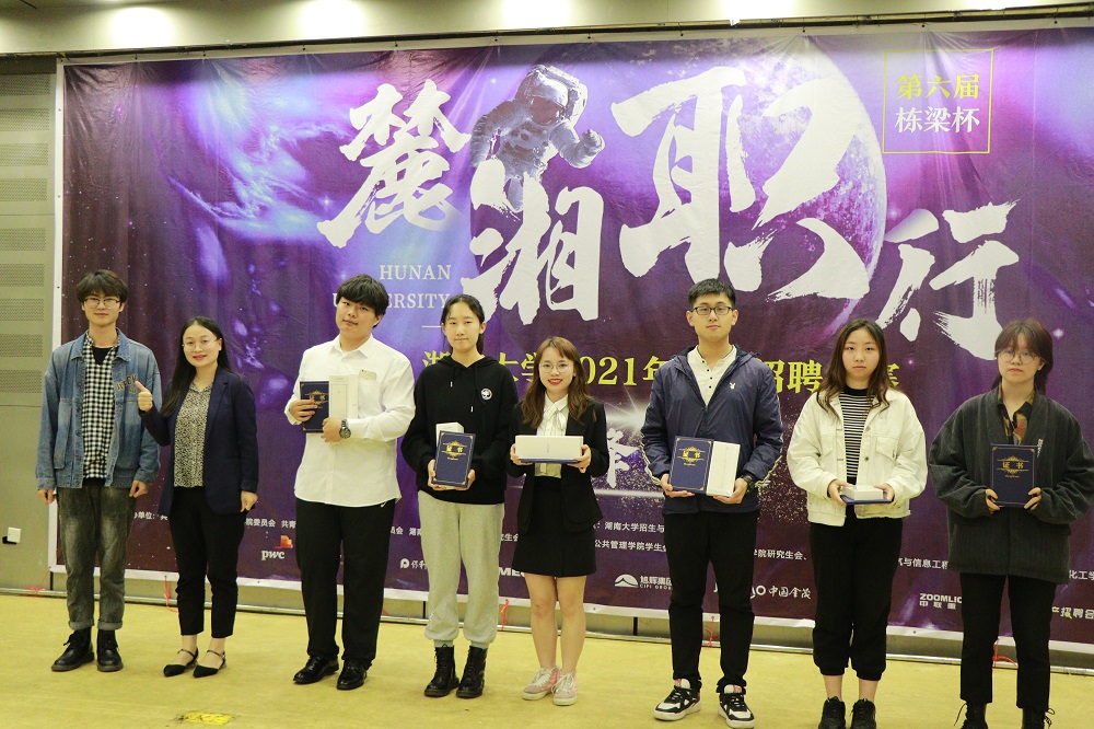 最后,公考赛道和校招赛道进行了颁奖仪式,到场嘉宾为选手颁发了奖杯和荣誉证书并与选手合影留念。至此,历时一个多月的第六届栋梁杯“麓湘职行”bv伟德官方网站2021年模拟招聘大赛圆满结束,整场比赛充分展示了湖大学子的风采。