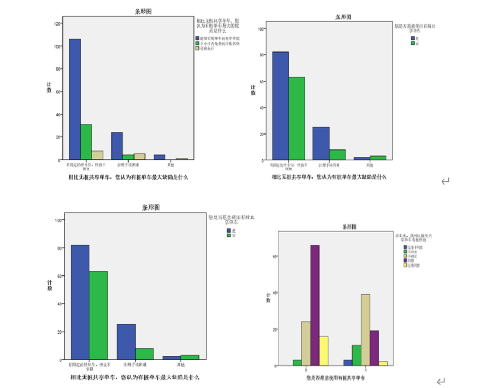 会后的实践活动中,小组成员们通过网络积极发放小组设计的调查问卷,共回收有效问卷185份。共享单车具有低碳环保、绿色出行的特点,共享单车不仅是共享经济的一种形态,同时也是人们绿色出行的选择之一。但通过对问卷的分析发现,虽然共享单车自出现以来给居民生活带来许多便利,较大程度上解决了“最后一公里”出行难题,提高了综合出行效率,亦满足了人们骑行和强身健体的需求。然而,近几年不少单车企业片面追求单车投放量与用户使用量,加上前期政府疏于监管,公民的规范使用意识不强,共享单车行业呈现出重使用而轻管理的局面。特别是共享单车在发展过程中却出现了乱停乱放、随意破坏、“私有化”共享单车等所造成的资源浪费和城市公共空间占用问题。鉴于共享单车公共性与便捷性的特点,使用者在停放共享单车时的责任意识相对薄弱。除了单车停放位置不当的问题,还存在虽然停放位置正确,但摆放“姿势”不整齐的现象。共享单车乱停放引发社会问题,一方面,造成市容的破坏和管理负担的增大;另一方面,给居民生活的带来不便,影响人们的出行,甚至存在磕伤绊倒等安全隐患。