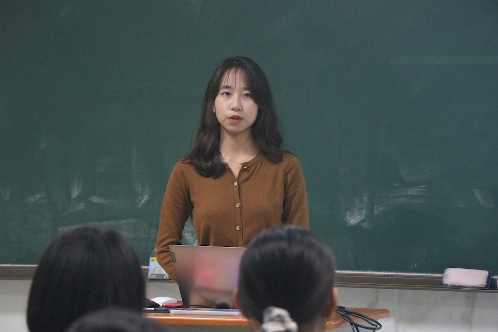 接下来,各学生团体负责人对挂靠在我院的学生团体进行介绍。湖湘廉风学社社长鲁家琪以“新起点·心出发”为主题,介绍了社团的发展历史和荣誉,也介绍了社团丰富多彩的活动。随后,来自环境科学与工程学院的章雪瑶同学介绍了国际关系协会,解答了新同学们对该社团及其相关活动的疑问,并对大家表示欢迎。随后,我院辩论队队长崔丽娟向大家介绍并展示了以往辩论队比赛时的精彩画面,让同学们对学院学生团体有了更加深入的了解。