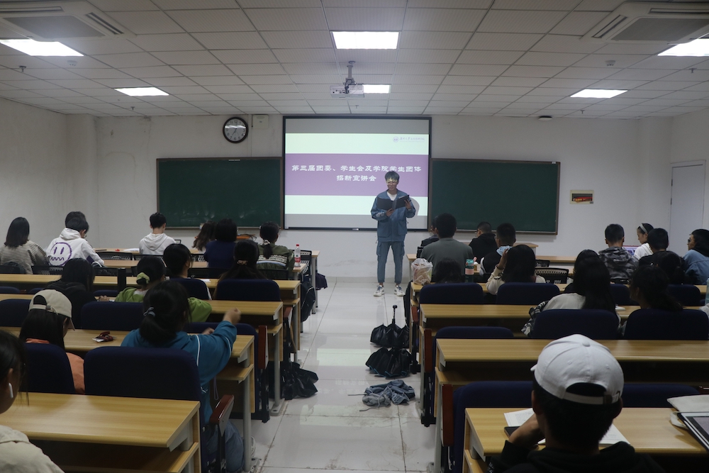 为做好bevictor伟德官网第三届团委、学生会以及学生团体招新工作,10月14日晚,我院在研楼C201教室召开团委、学生会及学生团体招新宣传会。本次会议由学生会活动部负责人常铖主持,本科生辅导员闫振振老师、团委、学生会、各学生团体代表以及2021级全体新生参加会议。