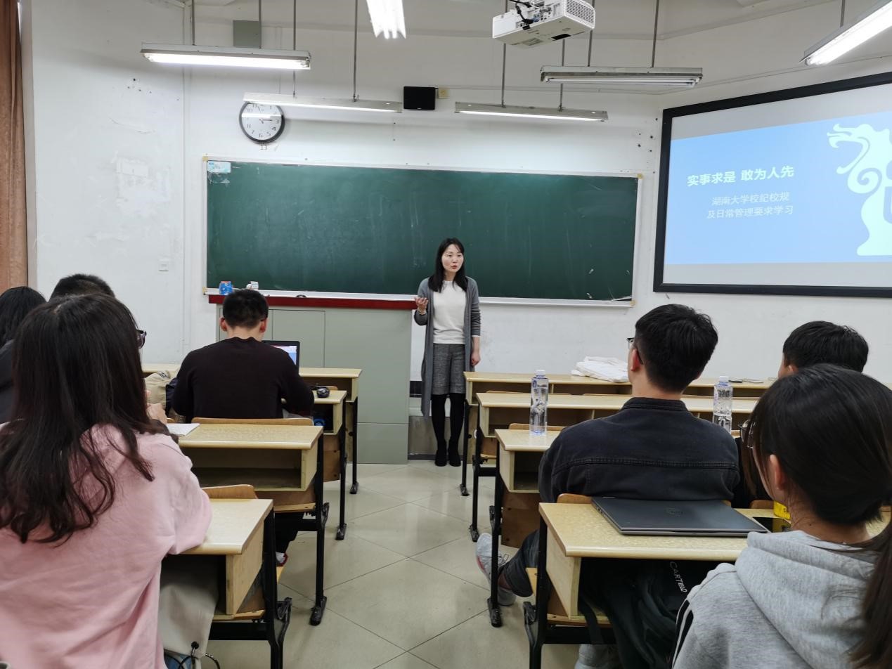 本次讲座旨在加强对学生的纪律与安全意识教育,引导学生明校史校情、知校纪校规,帮助研究生新生坚定理想信念,尽快融入新环境,从而明确自身定位,做好未来规划。杨老师从学校的校风校训、办学历史、办学成就等方面进行了介绍,并着重介绍了校训和校歌,进一步激发了同学们爱校荣校的情怀。