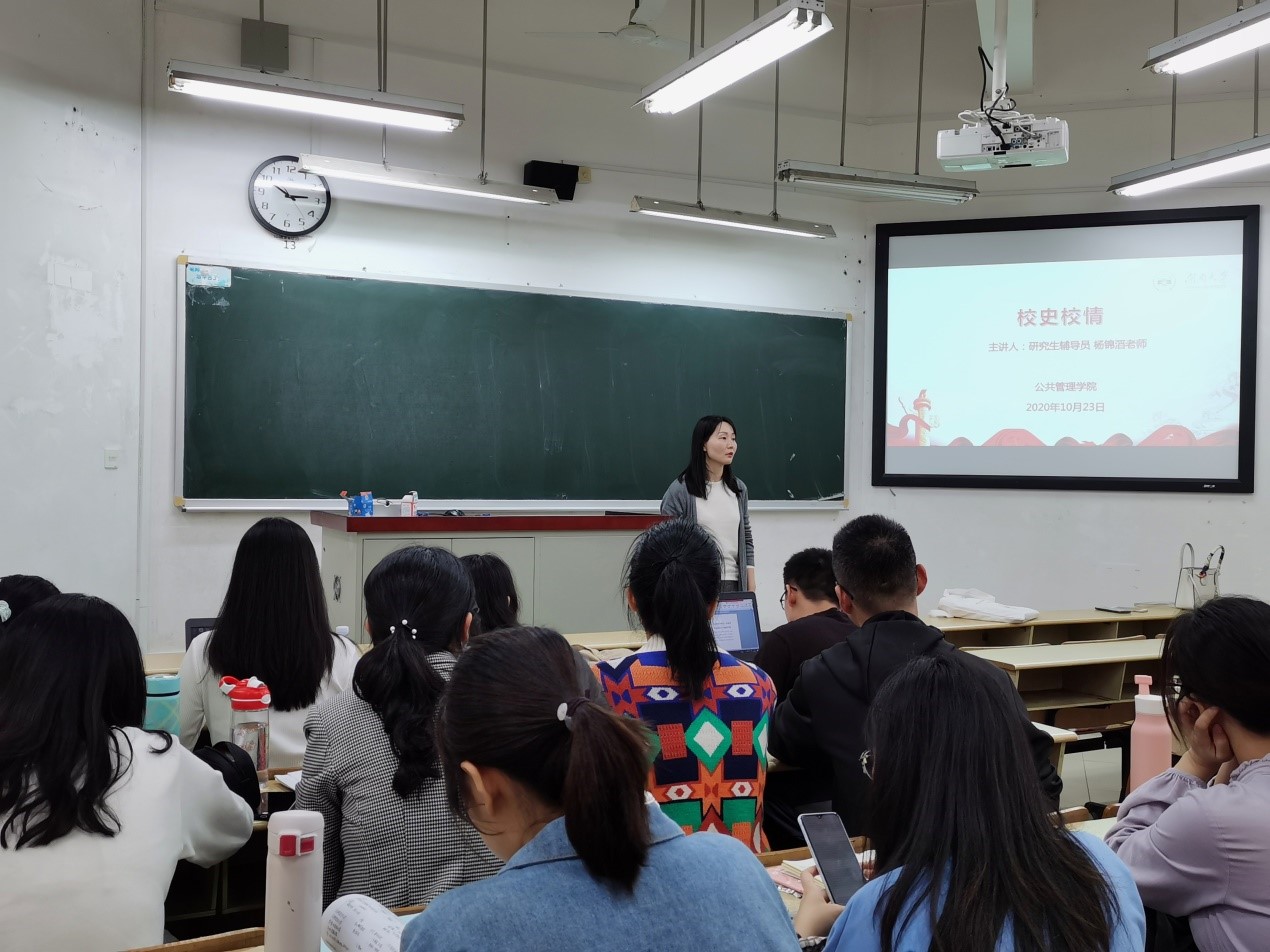 10月23日下午,bevictor伟德官网2020级研究生新生入学教育之“校史校情及校纪校规教育”讲座,在bv伟德官方网站财院校区第二教学楼304举行。本次讲座由bevictor伟德官网研究生辅导员杨锦滔老师主讲,学院全体2020级研究生参加了讲座。
