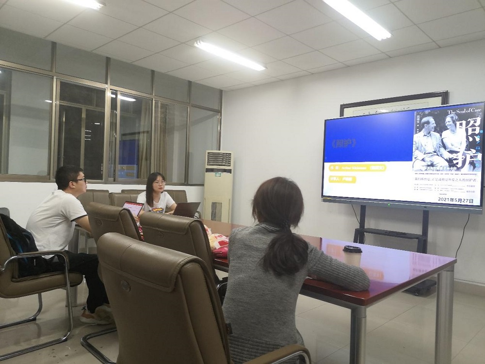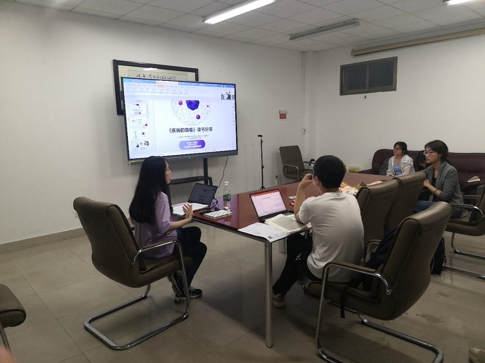 2021年5月28日,我院公共健康与社会保障研究所“品读经典”第5期读书会在法学楼423会议室成功举办。博士研究生闫国章与硕士研究生叶珺洁向我们分享了《疾病的隐喻》一书,硕士研究生韦海蓓与卢缘圆向我们分享了《照护》一书。本次读书会由轮值教师周蔚老师主持,何文老师作为点评嘉宾参与讨论。